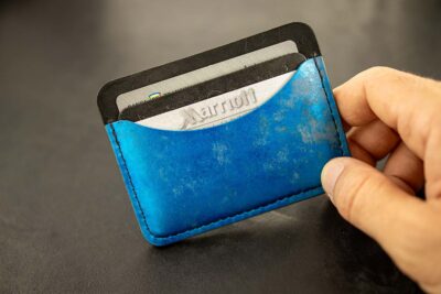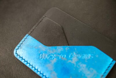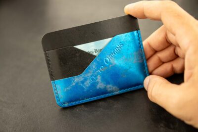 Pentru acest portcard, model mini, am folosit o piele mata cu o textura fina pentru compartimentul in care incap cateva bancnote pliate, o piele cu un aspect vintage pentru un contrast fin si, pentru o explozie de culoare am folosit faimoasa piele Bisanzio de la tabacaria Puccini, care ofera efecte electrice si care isi schimba nuantele in lumina soarelui. Acest produs nu primeste o partina de uzura foarte pronuntata in timp. Pentru un plus de eleganta am cusut manual folosint o ata de foarte buna calitate din Japonia, cu un fir foarte rezistent care nu se scamoseaza in timp.