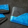 Pentru acest portcard, model mini, am folosit o piele mata cu o textura fina pentru compartimentul in care incap cateva bancnote pliate, o piele cu un aspect vintage pentru un contrast fin si, pentru o explozie de culoare am folosit faimoasa piele Bisanzio de la tabacaria Puccini, care ofera efecte electrice si care isi schimba nuantele in lumina soarelui. Acest produs nu primeste o partina de uzura foarte pronuntata in timp. Pentru un plus de eleganta am cusut manual folosint o ata de foarte buna calitate din Japonia, cu un fir foarte rezistent care nu se scamoseaza in timp.