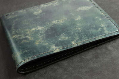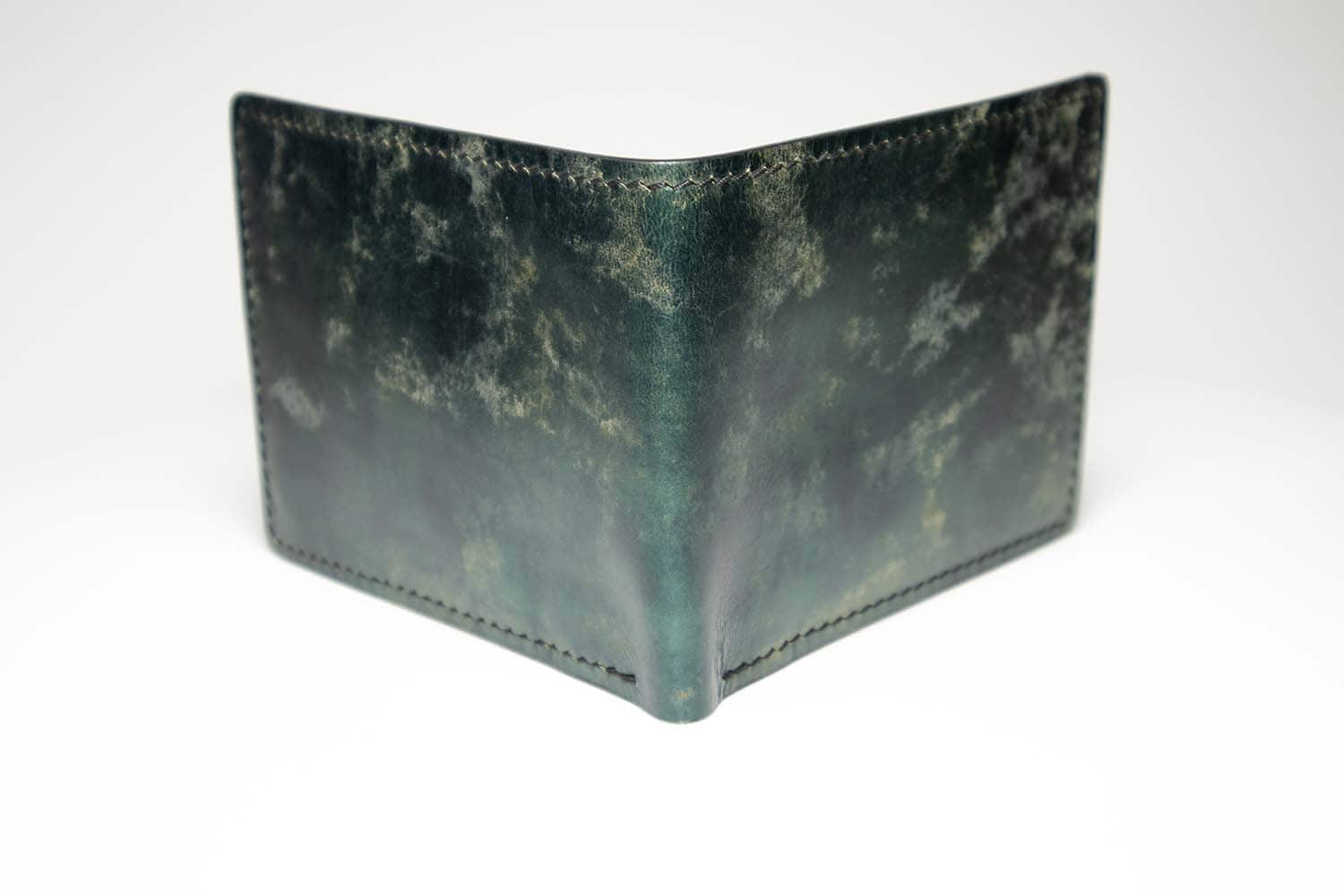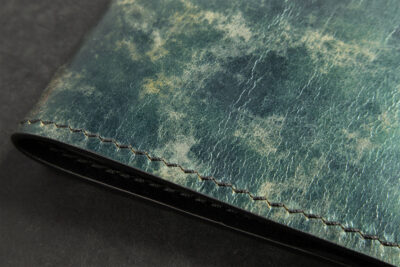 Portofelul “Bisanzio smeraldo – verde” este construit pe un tipar classic, subtire si rezistent, cusut manual. Este realizat din piele naturala de bovina, vopsita in tabacarie, intr-un stil artistic