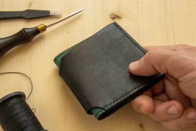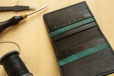 realizat din piele naturala de bovina, vopsita si slefuita manual in tabacarie, intr-un stil rustic care creeaza o culoare texturata. Pentru a dauga o nota de eleganta si rezistenta in timp dar si pentru a construi un produs foarte subtire, am adaugat o captuseala neagra in procesul de productie. Pielea folosita provine de la tabacaria Il Ponte, Italia. Este un produs realizat manual, care primeste in timp o patina naturala de uzura.