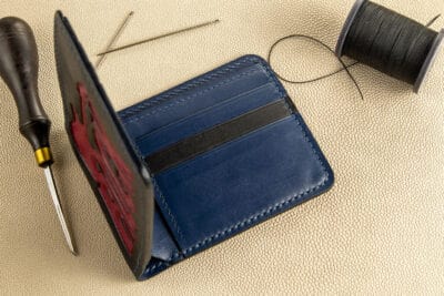 Portofelul din piele naturala sculptat si pictat manual. Acest model de buget, este conceput in acelasi stil cu o atentie sportita pentru detalii, diferenta este facuta de materialele folosite la interior.