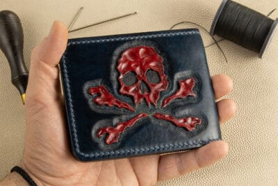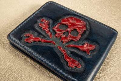 Portofel sculptat Rock si Skull albastru, crom albastru si negru