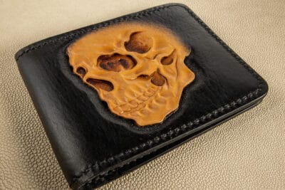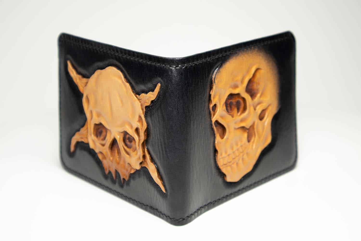 Portofel sculptat Skull si Skull natur crom negru